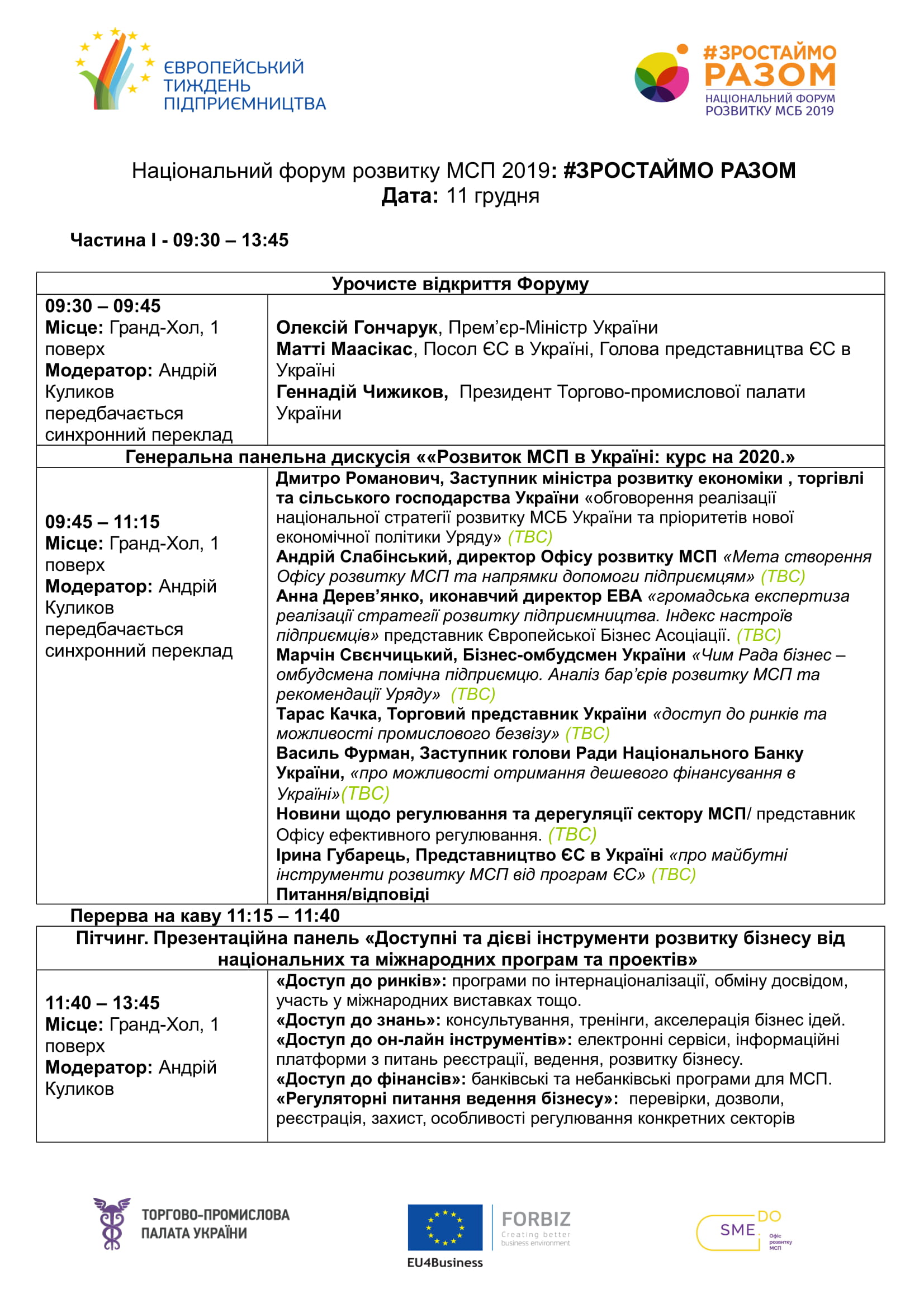 Цьогорічний Форум буде заключним в низці заходів Європейського тижня МСП в Україні, організаторами якого виступають ТПП України, Офіс Розвитку Малого і Середнього Підприємництва при Мінеконорозвитку та проект EU4Business/FORBIZ за фінансової підтримки Делегації Європейського Союзу в Україні.