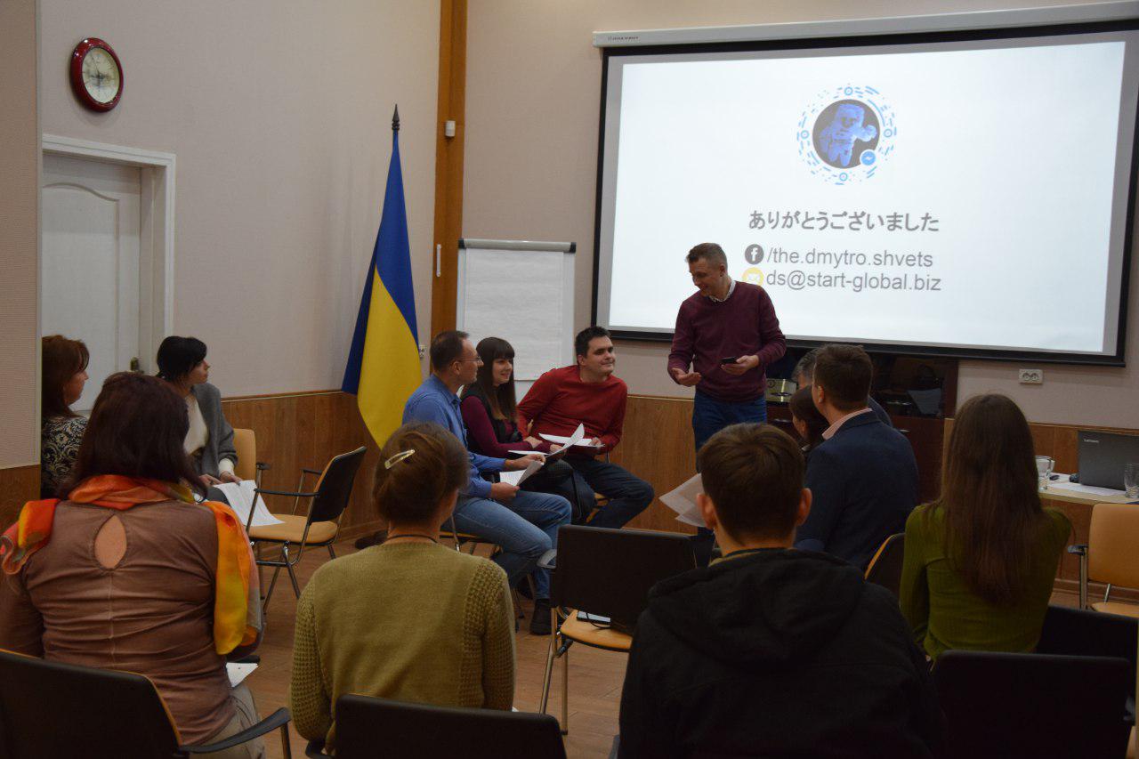 Дмитро Швець, викладач Києво-Могилянської бізнес-школи і партнер проекту Start Global, провів ділову гру «Пошук партнера в Канаді», в процесі якої учасники могли побачити свої сильні і слабкі сторони при введенні переговорів з канадськими партнерами.