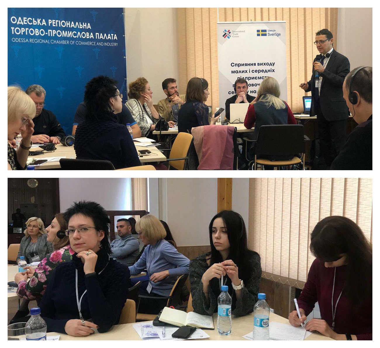З 28 по 31 жовтня Міжнародний Торгівельний Центр (ІТС) спільно з Центром бізнес-освіти Одеської регіональної торгово-промислової палати провели в Одесі тренінг «Розробка портфелю послуг організацій з підтримки бізнесу" в рамках навчального курсу Проекту ІТС «Сприяння виходу малих і середніх підприємств плодоовочевого сектору на зовнішні ринки та включення їх у ланцюжки доданої вартості».