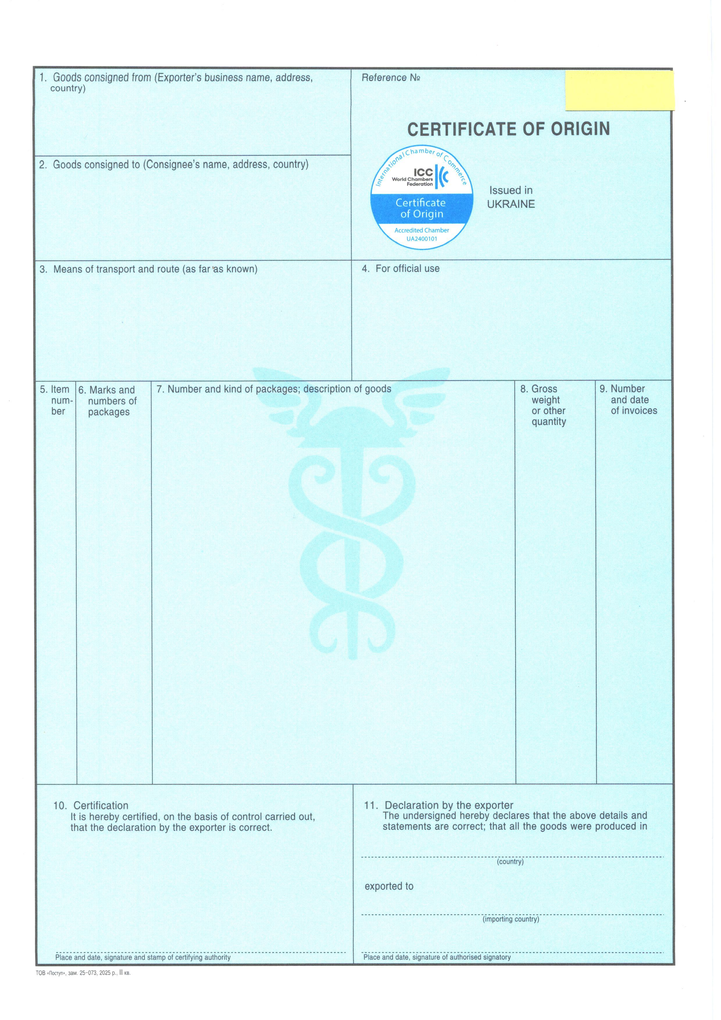 ОРТПП видає наступні форми сертифікатів про походження (Зразки сертифікатів для ознайомлення):